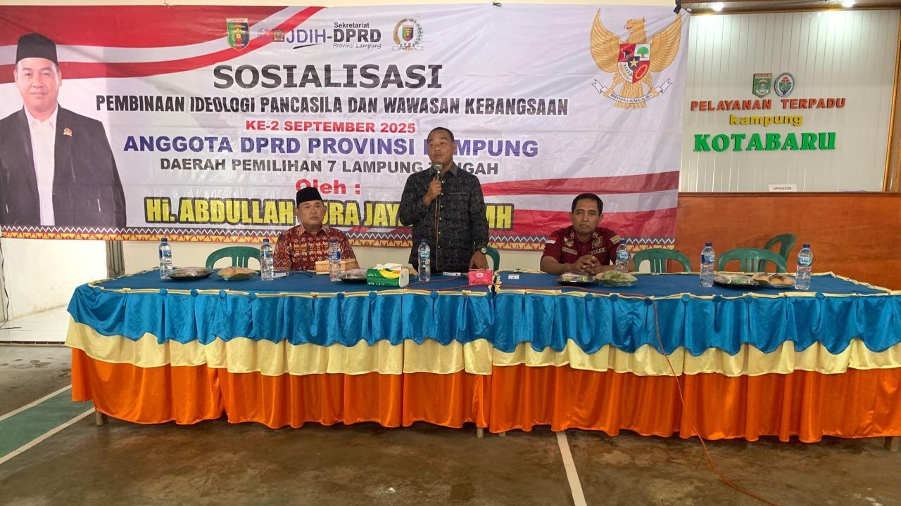Anggota DPRD Provinsi Lampung, Abdullah Surajaya atau akrab disapa Bang Sura, kembali menggelar Sosialisasi Pembinaan Ideologi Pancasila dan Wawasan Kebangsaan ke-2 pada bulan September 2025. Kegiatan berlangsung di Kampung Kota Baru, Kecamatan Padang Ratu, Sabtu (20/9/2025).