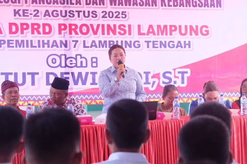 Pemuda memiliki peran strategis sebagai ujung tombak dalam memperkuat ideologi Pancasila dan Wawasan Kebangsaan. Hal itu disampaikan Anggota DPRD Provinsi Lampung Dapil Lampung Tengah, Ni Ketut Dewi Nadi, saat menggelar sosialisasi Pembinaan Ideologi Pancasila dan Wawasan Kebangsaan di Kampung Rama Gunawan, Seputih Raman, Lampung Tengah, Sabtu, 23 Agustus 2025.