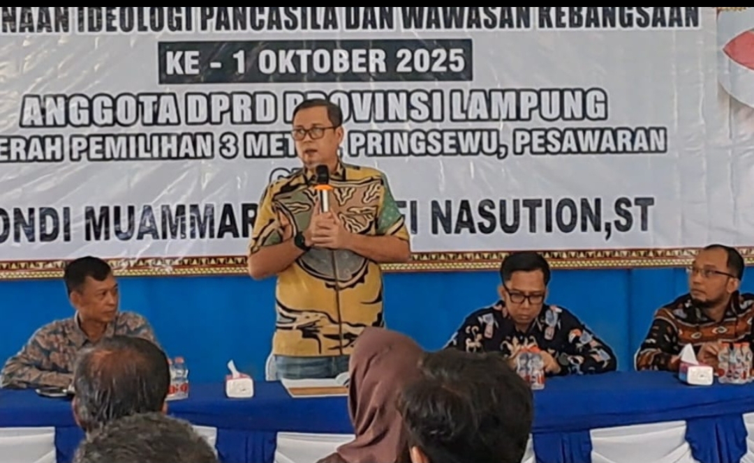 Upaya memperkuat ideologi bangsa terus dilakukan DPRD Provinsi Lampung melalui program Sosialisasi Pembinaan Ideologi Pancasila dan Wawasan Kebangsaan. Salah satunya digelar oleh Anggota DPRD Lampung, Tondi Muammar Ghadafi Nasution, di Kelurahan Purwoasri, Kecamatan Metro Utara, Sabtu (11/10/2025).