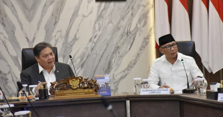 Gubernur Lampung Rahmat Mirzani Djausal bersama sejumlah kepala daerah di Provinsi Lampung menggelar pertemuan dengan Menteri Koordinator Bidang Perekonomian, Airlangga Hartarto, di Jakarta, Rabu (17/9/2025).