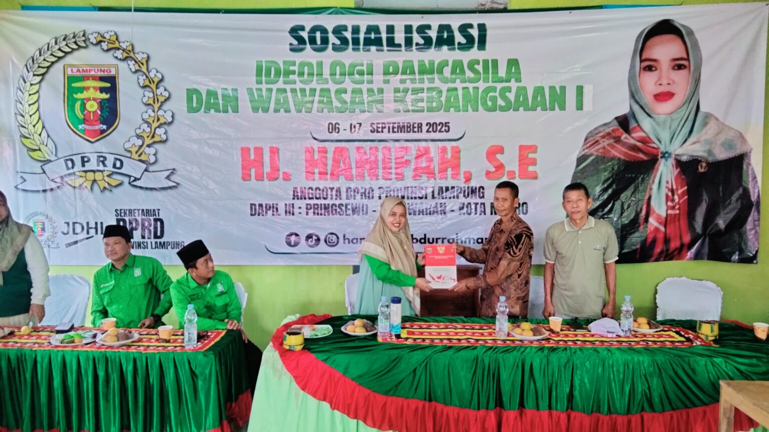 Anggota DPRD Provinsi Lampung Hanifah menggelar Sosialisasi Pembinaan Ideologi Pancasila dan Wawasan Kebangsaan di Desa Gunung Rejo, Kecamatan Way Ratai, Sabtu (6/9/2025).