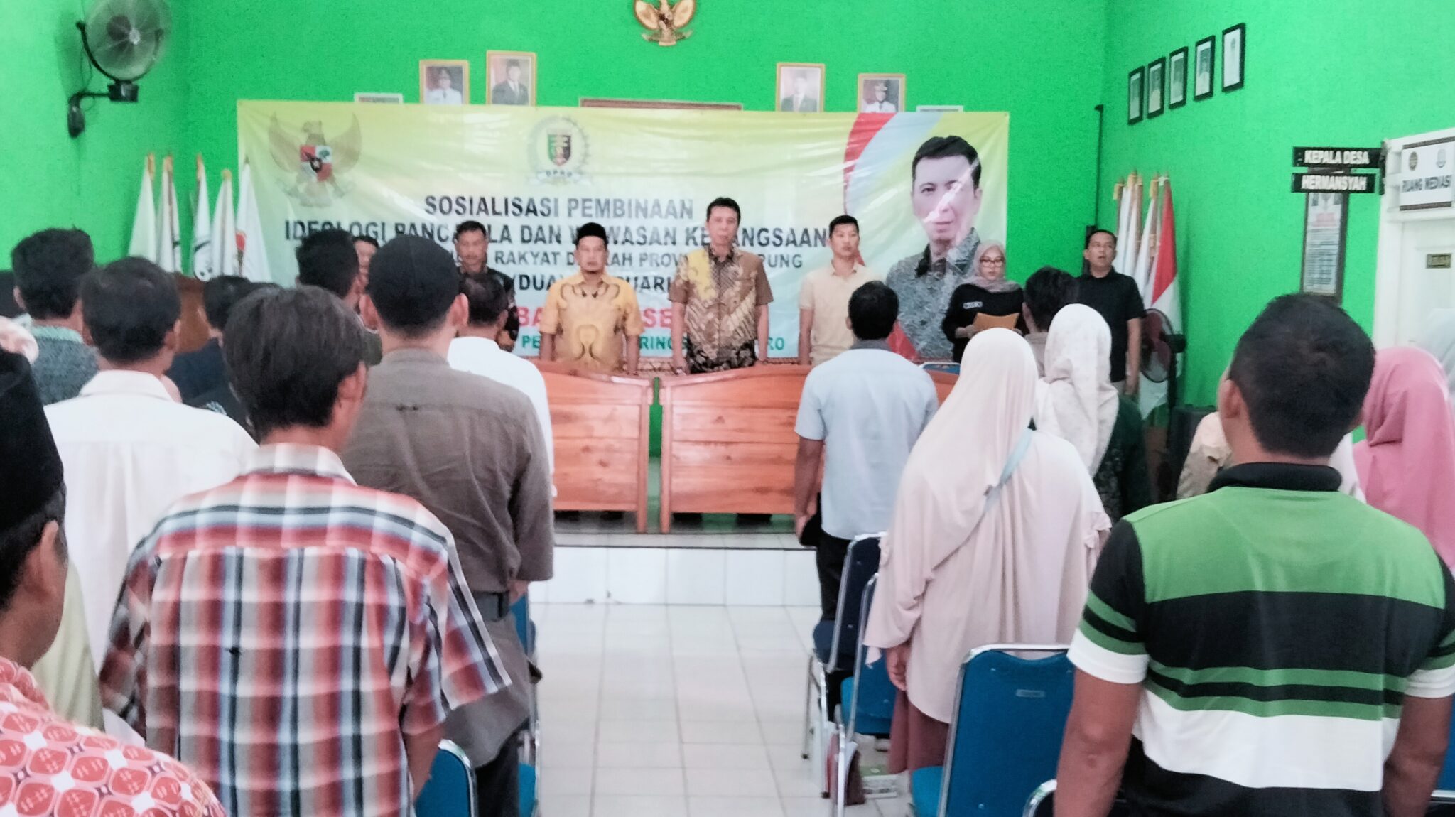 Kegiatan dihadiri Kepala Desa Hermansyah serta tokoh masyarakat, tokoh agama, dan tokoh pemuda. Acara berlangsung interaktif dengan sesi diskusi dan tanya jawab, membahas tantangan menjaga persatuan di tingkat desa hingga upaya menangkal pengaruh negatif dari luar.