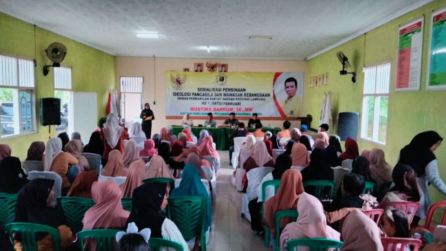 Anggota DPRD Provinsi Lampung dari Fraksi Golkar, Mustika Bahrum, menggelar Sosialisasi Pembinaan Ideologi Pancasila dan Wawasan Kebangsaan ke-1 Februari 2026 di Balai Pekon Parerejo, Kecamatan Gading Rejo, Kabupaten Pringsewu, Minggu (8/2/2026).