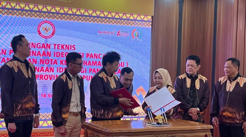 Pemerintah Provinsi Lampung bersama Badan Pembinaan Ideologi Pancasila (BPIP) dan DPRD Provinsi Lampung menggelar Bimbingan Teknis (Bimtek) Pemantapan Pembinaan Ideologi Pancasila sekaligus penandatanganan nota kesepahaman (MoU), Kamis, 18 September 2025, di Balai Keratun, Kantor Gubernur Lampung.