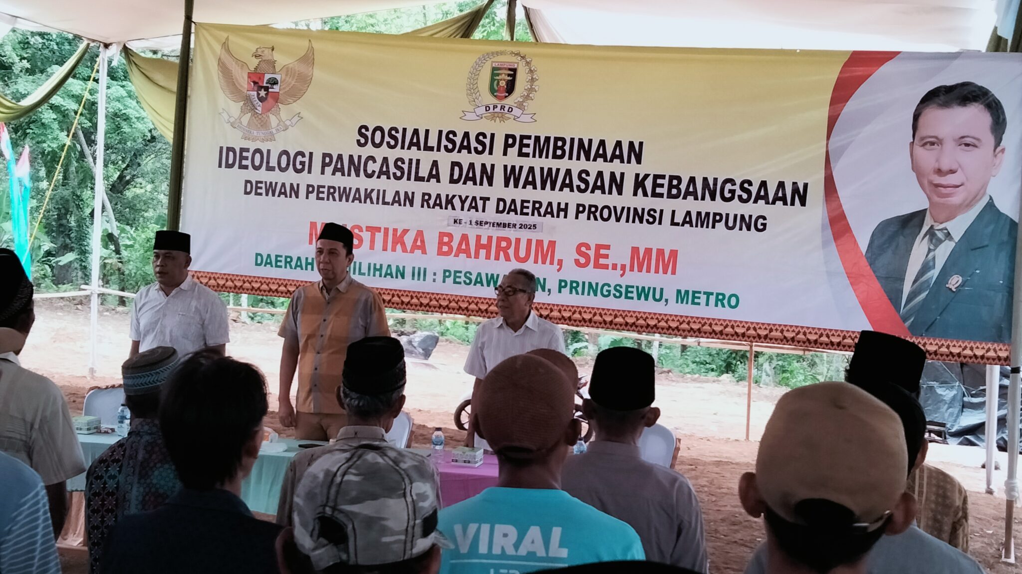 Suasana hangat mewarnai Sosialisasi Pembinaan Ideologi Pancasila dan Wawasan Kebangsaan yang digelar di Dusun Tanjung Rahayu, Desa Tanjung Agung, Kecamatan Way Lima, Sabtu sore. Kegiatan ini diinisiasi Anggota DPRD Provinsi Lampung, Mustika Bahrum, dan menjadi agenda pertama di bulan September 2025.
