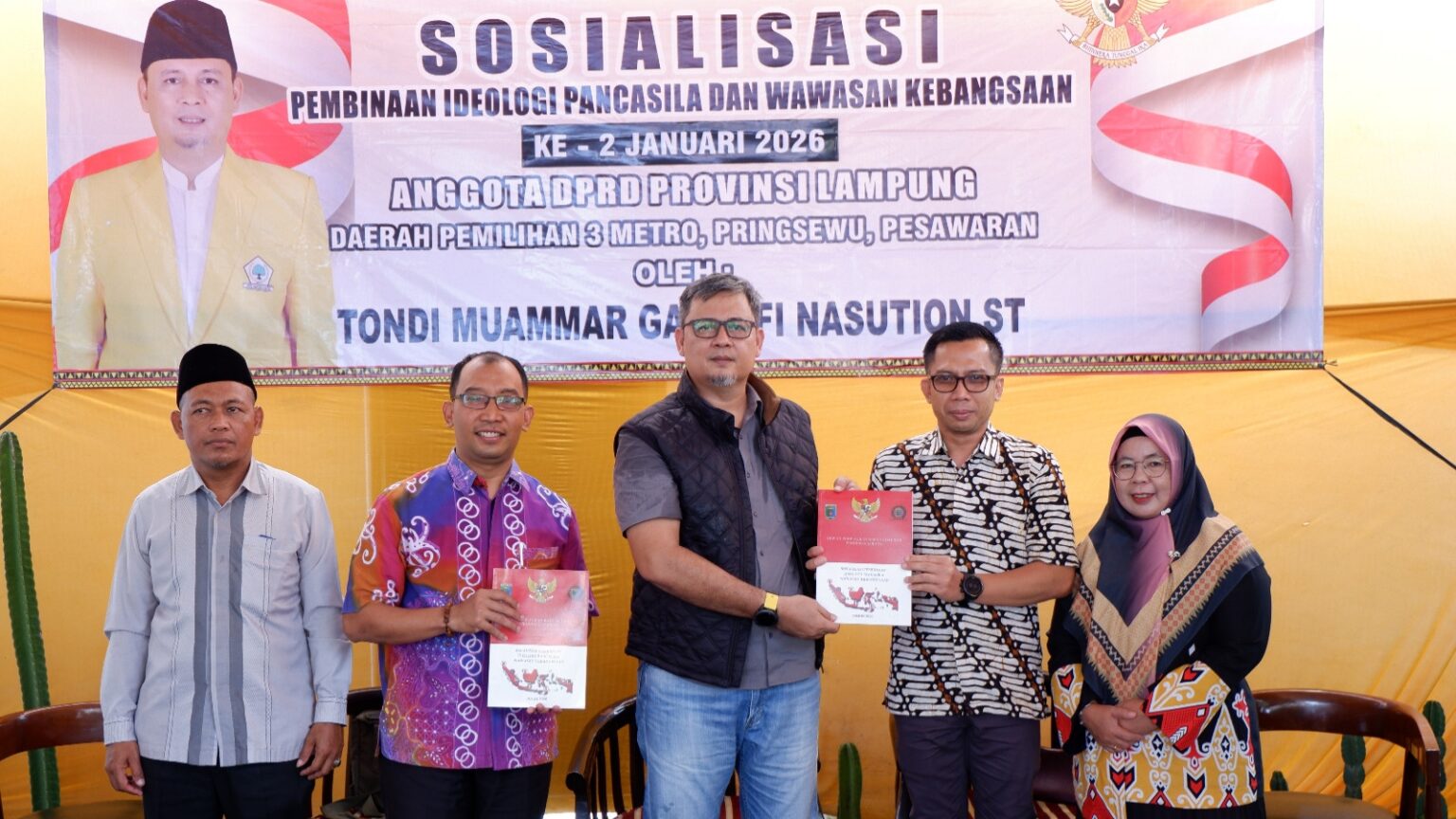 Anggota Komisi IV DPRD Provinsi Lampung, Tondi Muammar Gaddafi, melaksanakan kegiatan Pembinaan Ideologi Pancasila (PIP) ke-2 pada Januari 2026 di Kelurahan Iring Mulyo, Kecamatan Metro Timur, Kota Metro, Sabtu (31/1/2026).