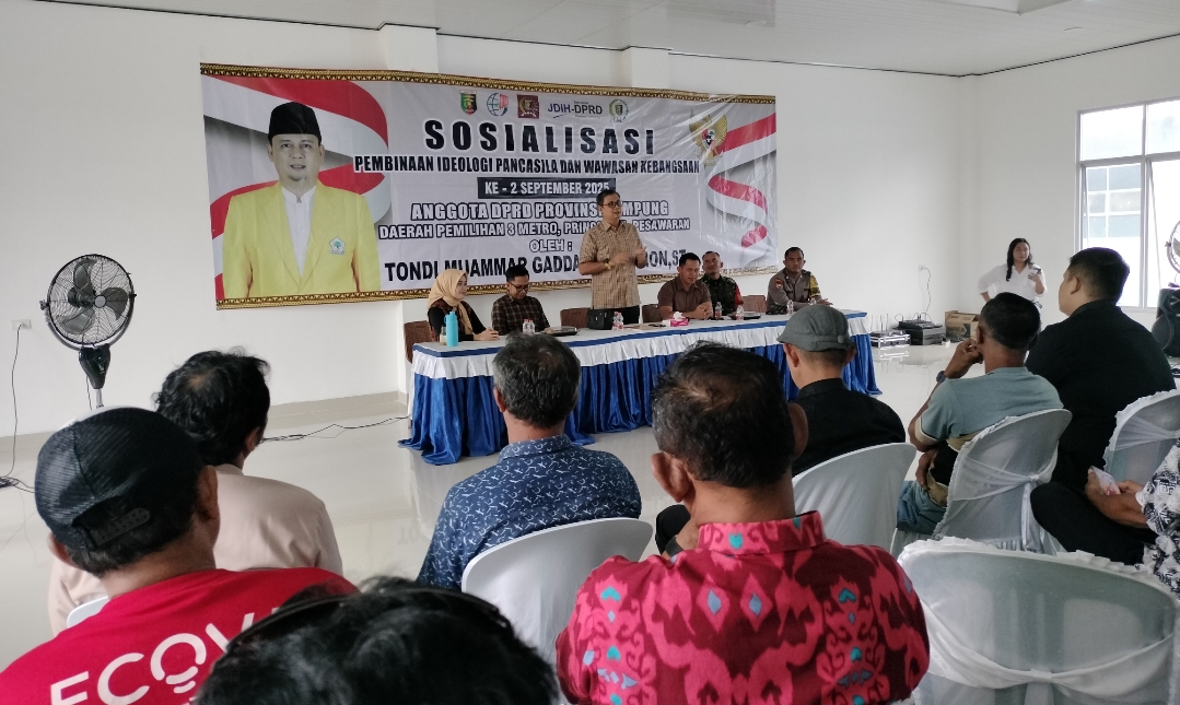 Anggota DPRD Provinsi Lampung dari Dapil III, Tondi Muammar Gaddafi Nasution, menegaskan kegiatan Sosialisasi Pembinaan Ideologi Pancasila dan Wawasan Kebangsaan bukan sekadar agenda formal, melainkan sarana memperkuat silaturahmi dengan masyarakat di tingkat kelurahan.