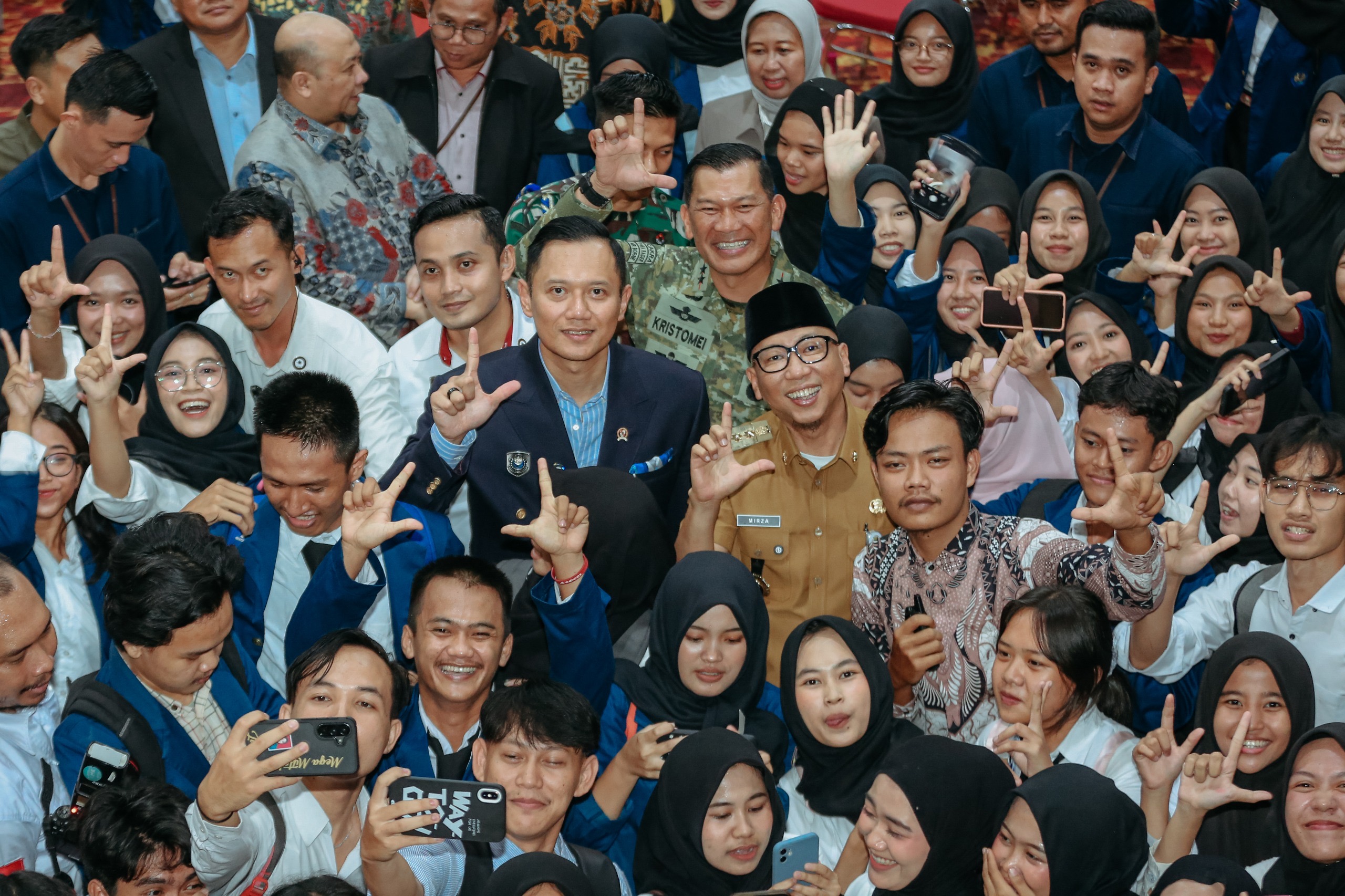 Menteri Koordinator Bidang Infrastruktur dan Pembangunan Kewilayahan, Agus Harimurti Yudhoyono (AHY), mengisi kuliah umum yang digelar Badan Eksekutif Mahasiswa Universitas Lampung (Unila) 2025 di Gedung Serba Guna kampus tersebut, Selasa, 14 Oktober 2025.